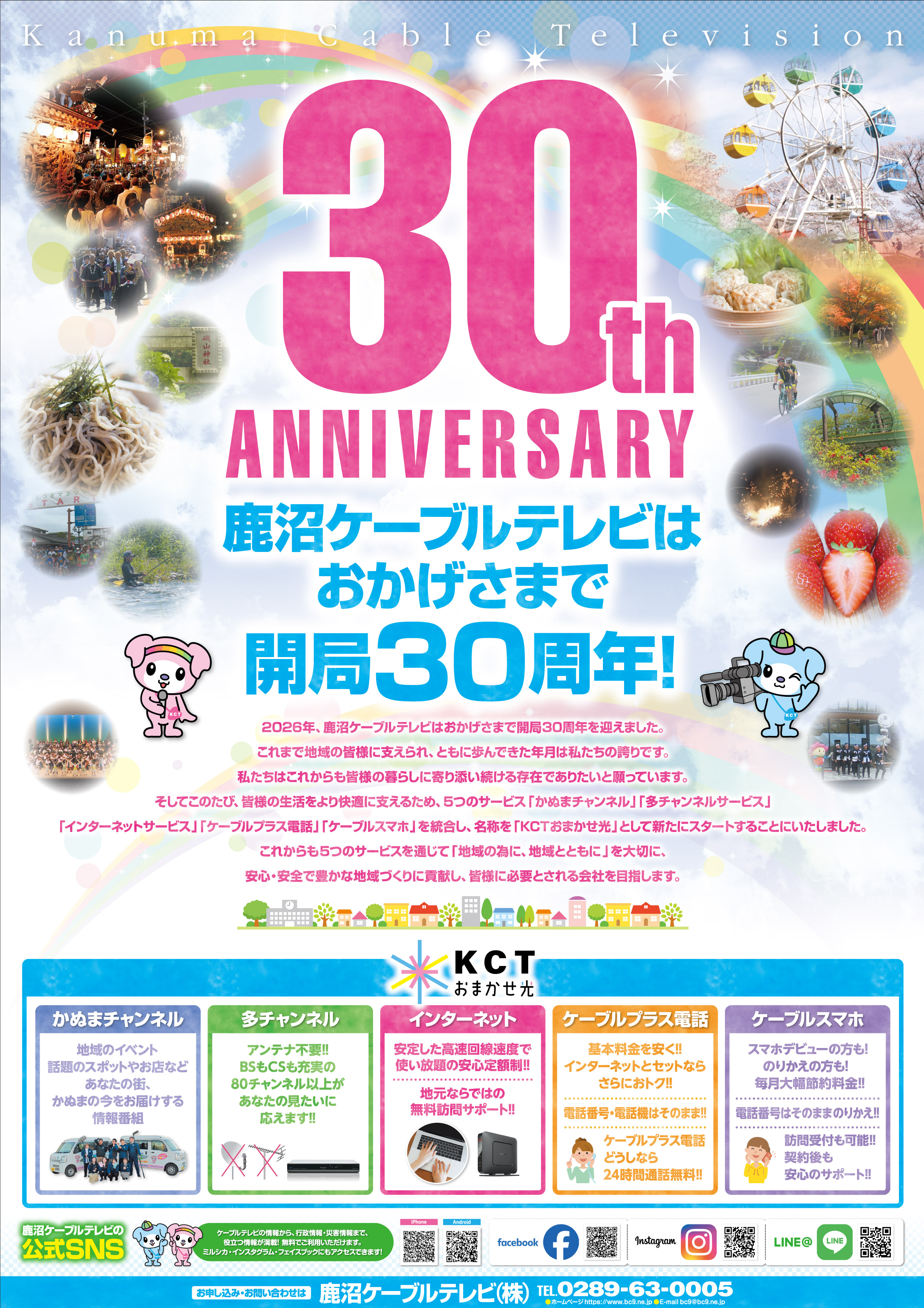 鹿沼ケーブルテレビ(KCT)は、地域の皆さまに支えられ、開局30周年を迎えました。